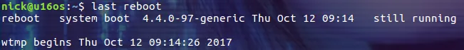 如果我们想快速知道系统最后一次的重启时间,可以使用下面的命令: