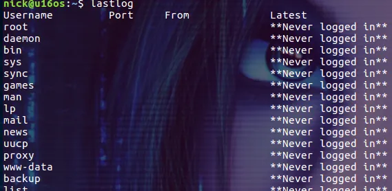 其实 lastlog 命令就是从 /var/log/lastlog 文件中取出的内容。