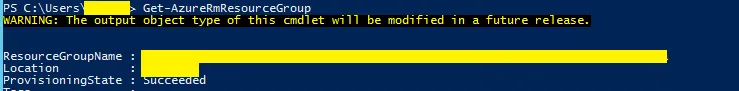 好了现在让我们再来执行一次 Get-AzureRmResourceGroup 命令。