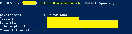 Select-AzureRmProfile –Path “d:\test\myprofile.json”