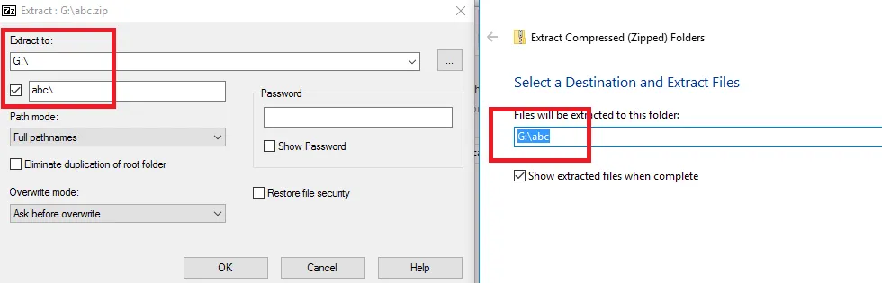 当我们解压缩abc.zip文件时就会发生一件比较有趣的事。无论通过右键菜单中windows提供的”Extract All…”还是7z提供的”Extract files…”,默认都会给解压缩的文件添加一级目录即abc。