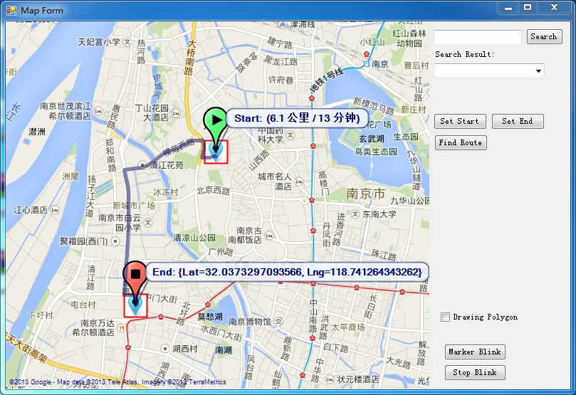 上一篇介绍了如何在GMap地图上添加多边形,这篇介绍下如何使用在线的地图服务进行“地址解析”和“路径查找”。