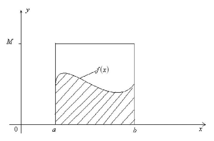 如果我们很难求解出 的原函数,那么这个积分比较难求解。当然我们可以通过蒙特卡罗方法来模拟求解近似值。如何模拟呢?假设我们函数图像如下图: