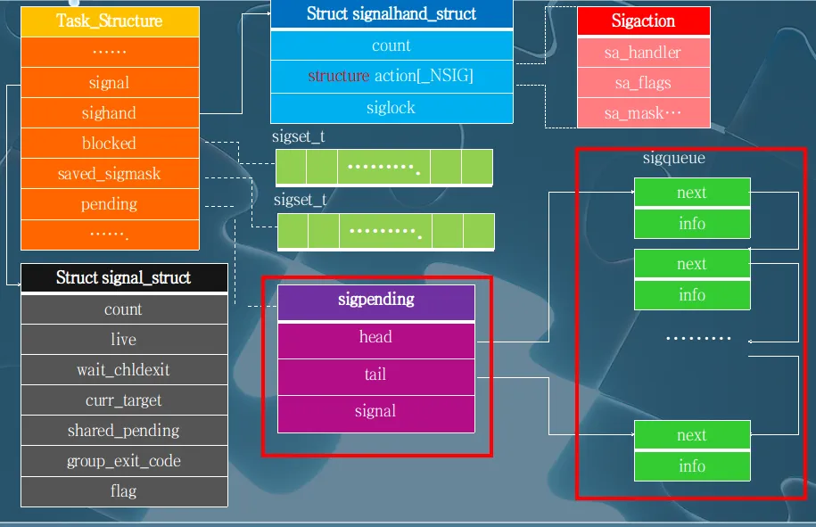 - sigaddset(&pending->signal, sig); //加入位图
