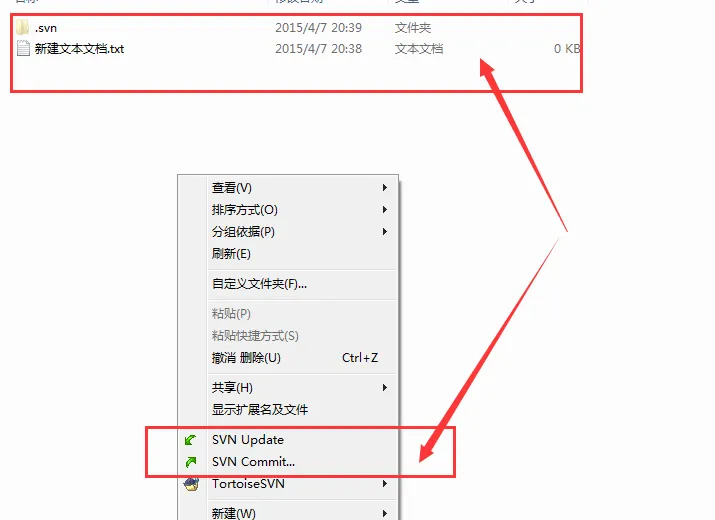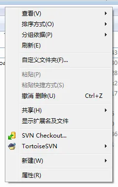 注意:只有安装TortoiseSVN客户端工具后,在相应的检出目录中,才会出现该右键菜单。
