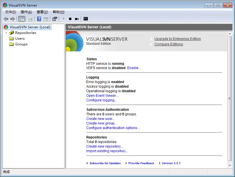 因此需要一个类似Oracle或者Mysql的服务器用于保存和管理库文件(要保存的代码等文件)的服务端——VisualSVN Server。