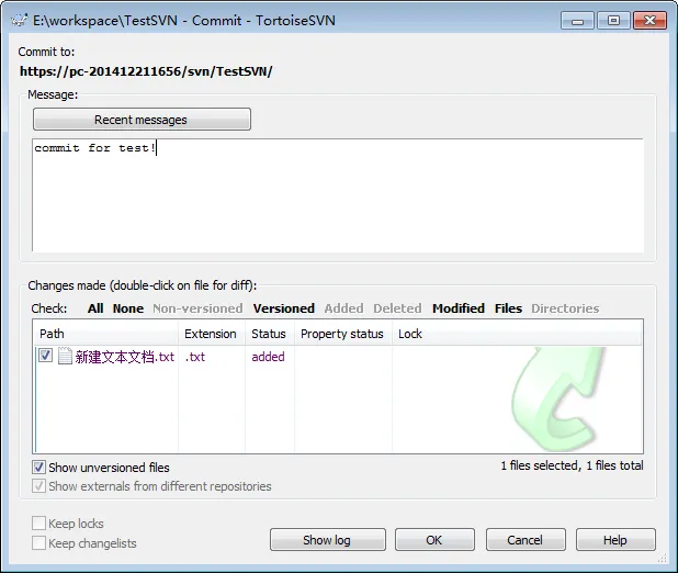为了便于测试,在文件夹中创建一个记事本文件,右键选择SVN commit提交。