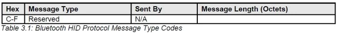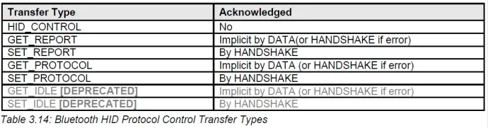 该Message用来acknowledgeSET_REPORT, SET_IDLE and SET_PROTOCOL等request。只在Control Channel上传输,只由Bluetooth HID device。