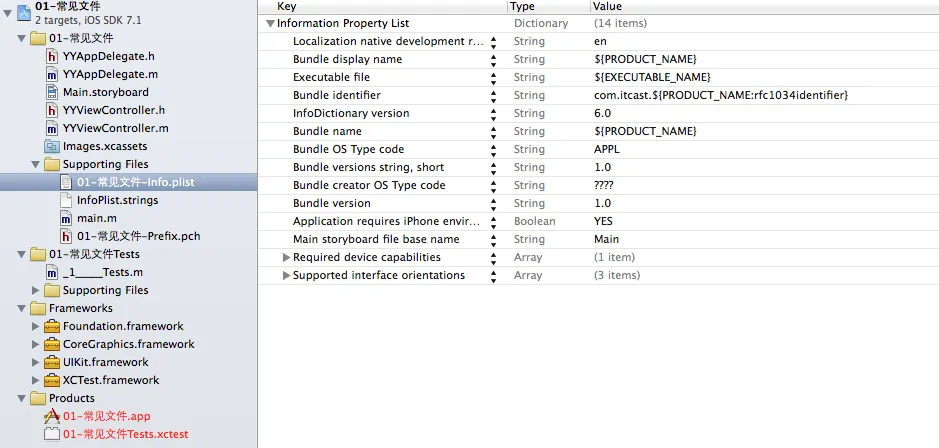 (1)XXXinfo.plist文件(在该项目中为 01-常见文件-Info.plist)