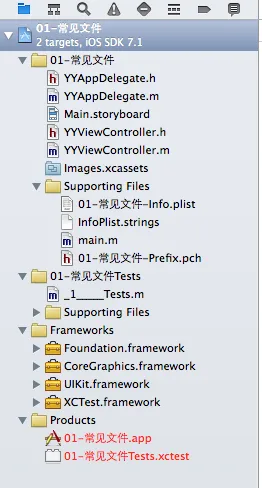 1.products文件夹:主要用于mac电脑开发的可执行文件,ios开发用不到这个文件
