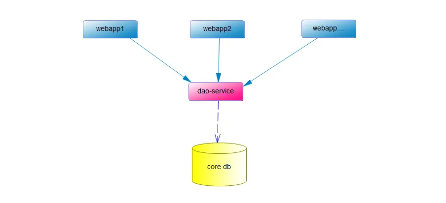 项目组有人提出绕开项目 webappA ,其余的 webappB/webappC ...直接连接 DB_A 进行交互,但很快被否决了(每个项目数据库访问层你都要重新定义和编写)。