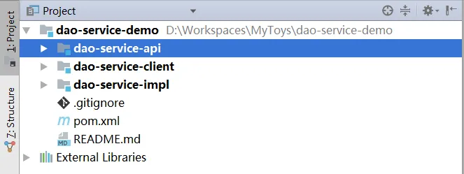 dao-service-api 为提供给外层的接口,最终的呈现方式为 jar, maven 项目直接依赖即可。