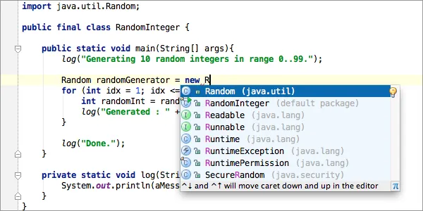 第一个也是最吸引我的就是“即刻完成”特性,不同于其他 IDE,IDEA 可在任意地方提供这个功能,而不只是当你要访问某个类的成员时。