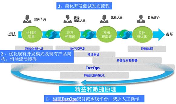DevOps,其主要目的就是通过消除开发部门与运维部门之间的壁垒,从而使得一个企业的 IT 组织能够在敏捷地适应市场变化的同时,将一个企业的业务能力通过创新性的解决方案快速地从 IT 部门的开发过程推向用户。它主要利用了精益的思想,通过消除 IT 部门整个产品交付流中所存在的浪费及障碍,从而达到快速交付的目的。