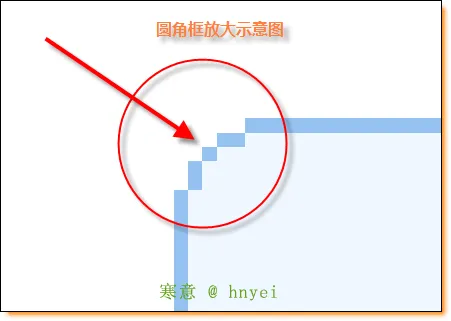 纯CSS方式实现圆角框的原理在网络上已经有很多人详细解说了,下面这个示意图是我将其中的一个圆角进行放大后的效果。