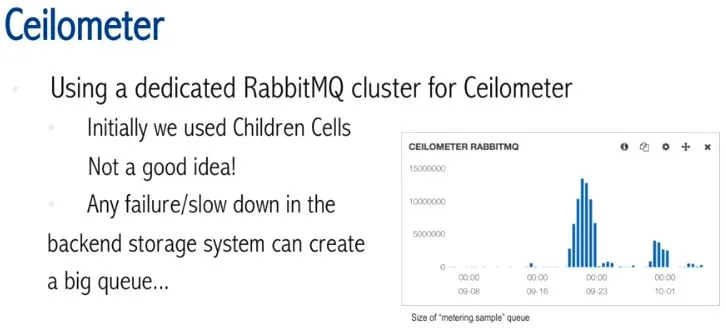 - Ceilometer 扩展性方面,以及性能和开销等方面,默认情况下依然问题很大,CERN 做出了改进的非常好的示范