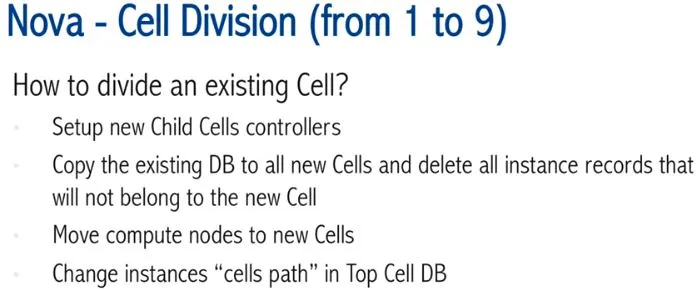 - 计算扩展性方面,使用 Nova cell 是一个解决方案,但是目前它的 V1 版本已经被冻结,V2 还在开发中,因此,要使用的话,需要做大量的开发和问题定位;而且,它还存在大量的局限性。