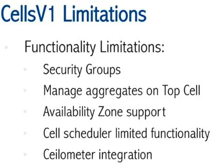 但是,Cell 目前还是有不少的局限,如下的功能不能和 Nova Cell 一起使用: