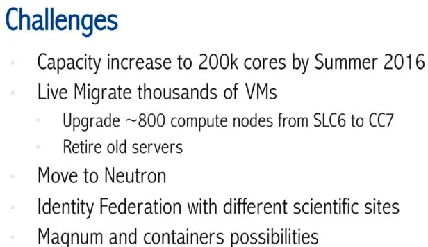- 网络扩展性方面,Neutron 的扩展性和稳定性依然问题很大,CERN 也在一步步尝试,期待他们使用 Neutron 的心得