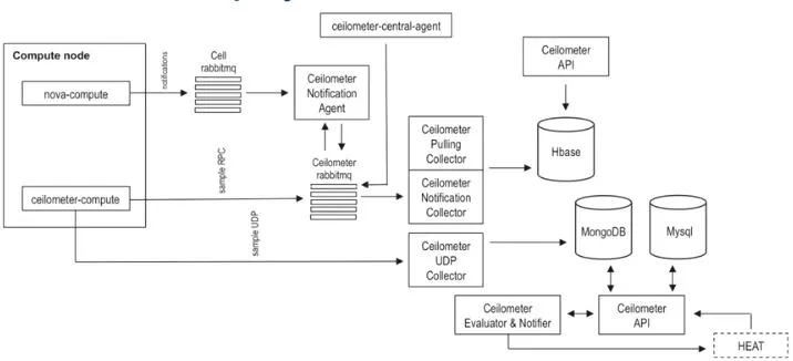两套Ceilometer 基础 设施。一个保存 sample,meters 等,用于统计,数据保存在 Hbase 中,数据保存3个月。之前用 MogoDB,但是难于扩展。