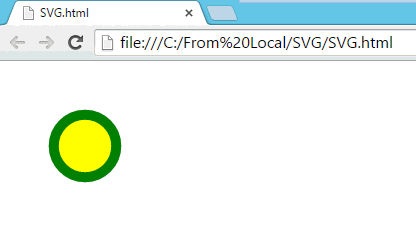 <svg width="120" height="120"> <circle cx="60" cy="60" r="25" stroke="green" id="MyCircle" stroke-width="8" fill="yellow" onmouseover="IncreaseSize();" onmouseout="DecreaseSize();" /> </svg> <input type="button" value="+" onclick="ChangeSize();">