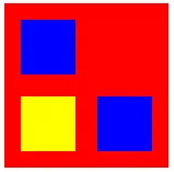 ctx.fillStyle="red"; ctx.fillRect(75, 75, 150, 150); ctx.fillStyle = "blue"; ctx.fillRect(90, 90, 50, 50); ctx.save(); ctx.fillStyle = "yellow"; ctx.fillRect(90, 160, 50, 50); ctx.save(); ctx.fillStyle = "green"; ctx.restore(); ctx.restore(); ctx.fillRect(160, 160, 50, 50);