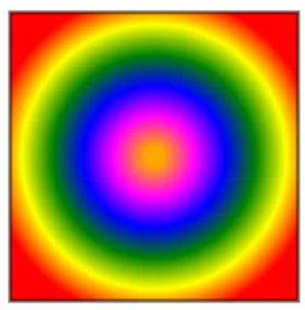 var grd = ctx.createRadialGradient(150, 150, 5, 150, 150,85); grd.addColorStop(0, "orange"); grd.addColorStop(0.2, "magenta"); grd.addColorStop(0.4, "blue"); grd.addColorStop(0.6, "green"); grd.addColorStop(0.8, "yellow"); grd.addColorStop(1, "red"); ctx.fillStyle = grd ctx.fillRect(75, 75, 150, 150);