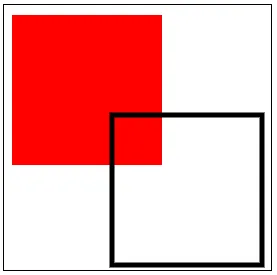 ctx.fillStyle="red"; ctx.fillRect(75, 75, 150, 150); ctx.strokeStyle = "black"; ctx.lineWidth = 5; ctx.strokeRect(175,175,150,150);