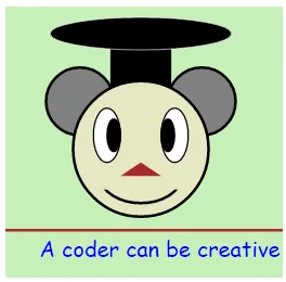 <text x="14" y="200" font-family="Comic Sans MS'" fill="Blue">A coder can be creative</text>