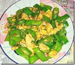 主料:尖椒5个,鸡蛋2个。 盐、白糖、味精各适量。