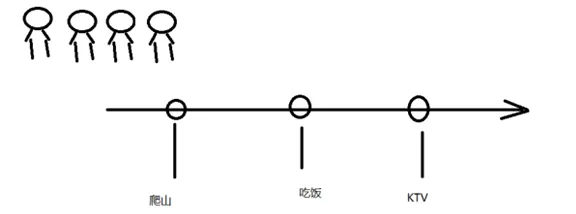 第一个人吃完饭之后要等待之后的三个人也吃晚饭,再去KTV