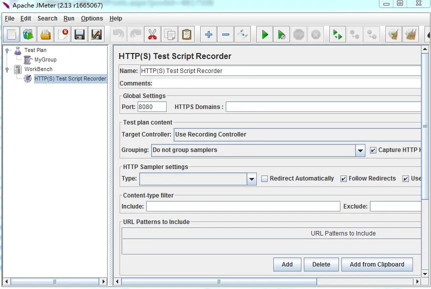 JMeter HTTP代理服务器的端口和浏览器设置的端口要一致