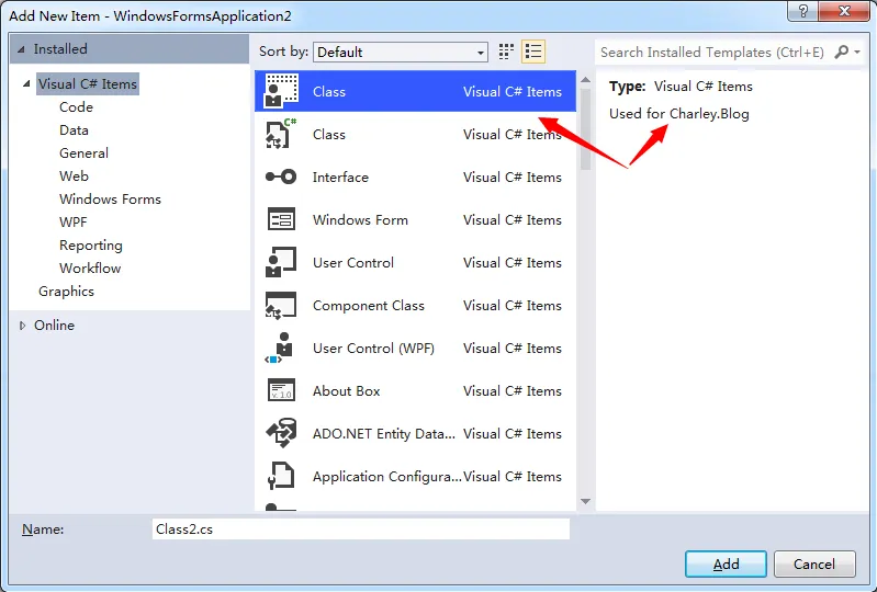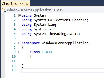 假如当我添加一个 .cs 文件后,我希望默认添加的文件要看起来像这个样子: