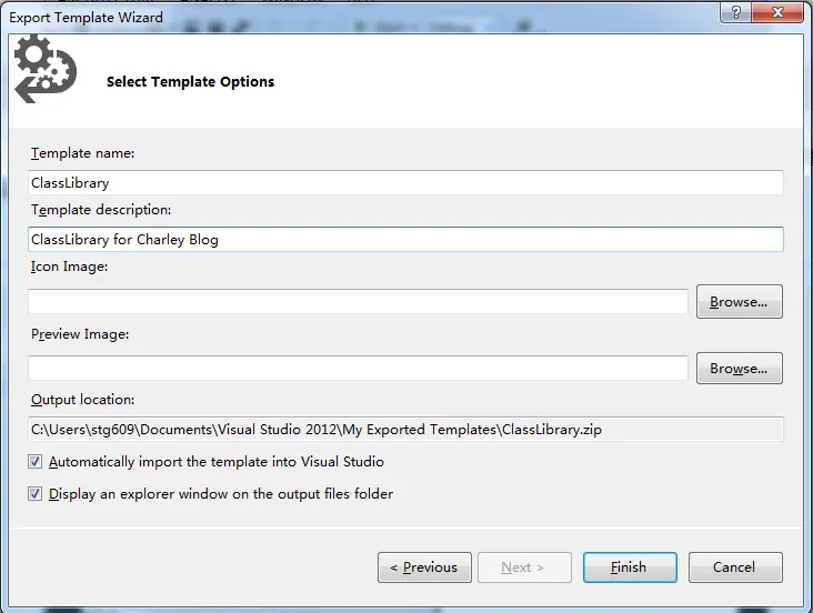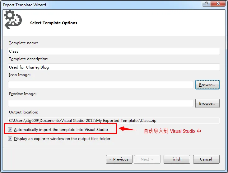 3.5 修改模板名称等信息,同时勾选 “自动导入到 Visual Studio ” 中