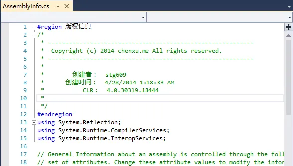 在开发项目的时候,由其是商业性质的大型项目时,往往需要在每个代码文件上都加上一段关于版权、开发人员的信息,并且名称空间上都需要带有公司的标志。这个时候,是选择在开发的时候手动添加还是自动生成呢?