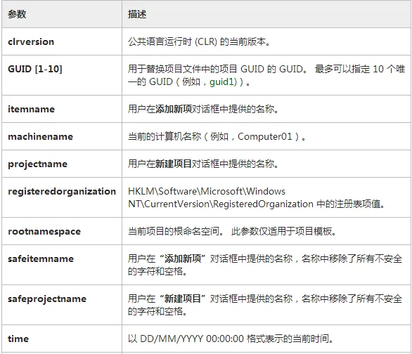 有一部分信息,例如时间,是没办法在写模板的时候就知道的,这个只能在生成文件的时候才能知道。此类动态的数据,Visual Studio 提供了一堆占位符供我们使用。