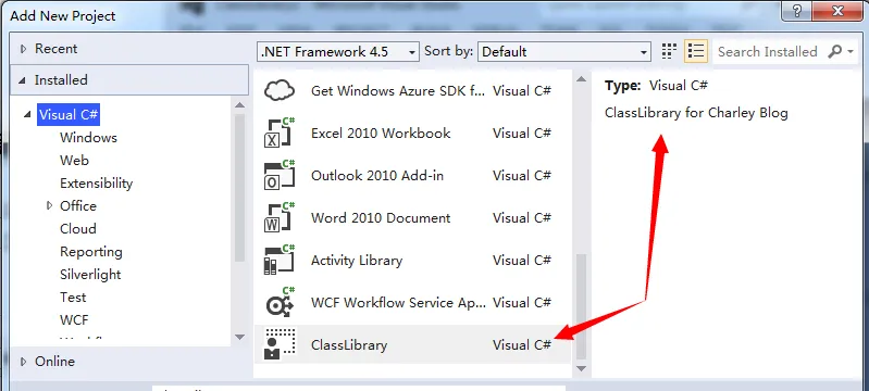 整个过程和自定义项目模板类似,只不过自定义工程模板的时候需要根据预期的模板工程新建一个对应的工程。这里我以类库项目为例进行介绍。
