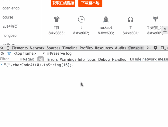 比如音乐icon可以使用 “” 替代,计算字符码值的方式是: