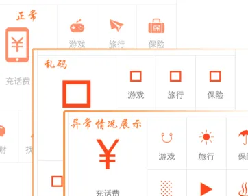 正常的情况下是一堆漂亮的 icon 图标,而当网络较慢或者 CDN 不稳定的时候,用户看到的是图示乱码的框框,优化之后,用户可以看到我们对 iconfont 的蜕化操作。效果预览: