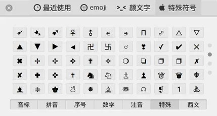 除了 emoji 外,我们输入法能够输出的所有文字在 web 上也都是能够正常显示的,所谓的正常显示就是不会出现 “”。平时常用的搜狗输入法/百度输入法都提供了很多的特殊字符,我们可以在这些特殊字符中找到最能表现icon的字符,当然,甚至可以使用文字、字母来替代。