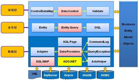 PDF.NET数据开发框架采用了完全不同的方式,先看看它的分层架构图: