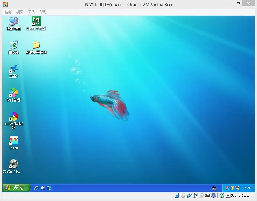 至此,大功告成,你可以开始轻轻的折腾这台虚拟电脑了。为啥是轻轻的?比靠斯,我在做这个虚拟电脑的时候,只分配的5G的硬盘大小,除去系统、软件,目前剩余1G多,按普通一集40分钟的美剧,生肉大小为400M左右,压制好的mp4,大小不会超过生肉,所以压一集,删一集,1G已经够用,如果你再装些杂七杂八的软件进去,导致压制提示磁盘空间不足,那就是你的事了,It's Not My Problem。