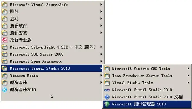 Visual Studio 2010 的旗舰版包含此应用程序,专业版及专业版是不包含的,因此我们选择安装Visual Studio 2010 旗舰版后,除了像以前版本的Visual Studio一样,有“Microsoft Visual Studio 2010”供开发人员使用,还增加有一个“Microsoft 测试管理器”供测试人员专门使用,这样Visual Studio就把开发和测试都包含进来,算是一个比较完整的集合了。