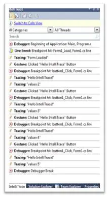 图14:IntelliTrace调试器重所记录的程序历史数据
