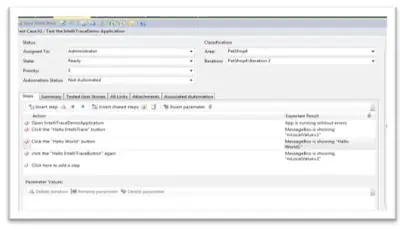 TFS 2010中专门提供测试用例(Test Case)工作项类型,这个工作项允许测试人员对具体的测试步骤进行设计,并且给出预测的结果;同时,借助测试管理器的录制功能,还可以把测试人员换的操作全部都录制下来,一边后来自动播放;或者生成Coded UI 测试,一旦有了Coded UI测试,我们就可以把这些针对UI的测试也集成到自动化构建中去。