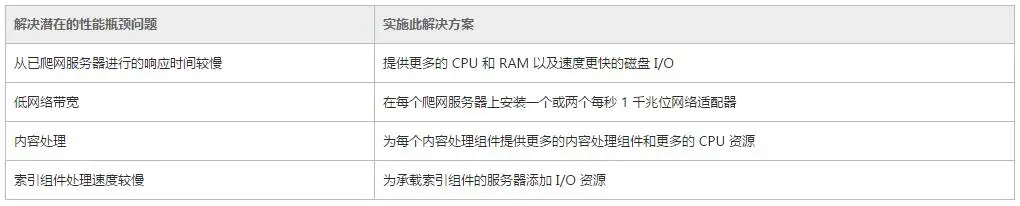 在爬网组件对内容进行爬网、将内容下载到爬网服务器(托管爬网组件的服务器),并将内容传给内容处理组件后,多个因素会对性能产生负面影响。若要提高爬网性能,可以执行以下操作: