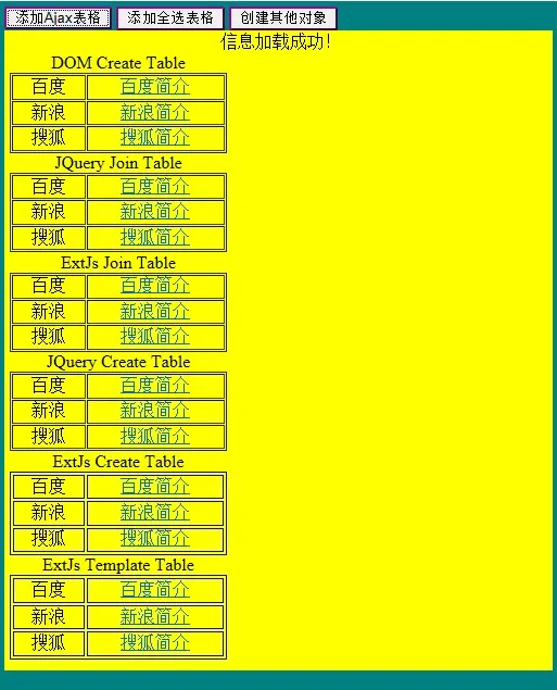 做了个简单使用JavaScript、JQuery、ExtJs进行DOM对象创建的测试,主要是使用JavaScript、JQuery、ExtJs动态创建Table对象、动态Table数据填充、多选控制。