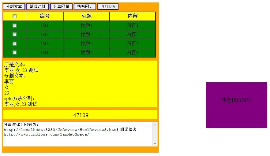 主要是自定义分割文本、Timer时钟使用、JS粘贴板使用、Div随鼠标移动的简单测试,这个稍稍好看些,效果图: