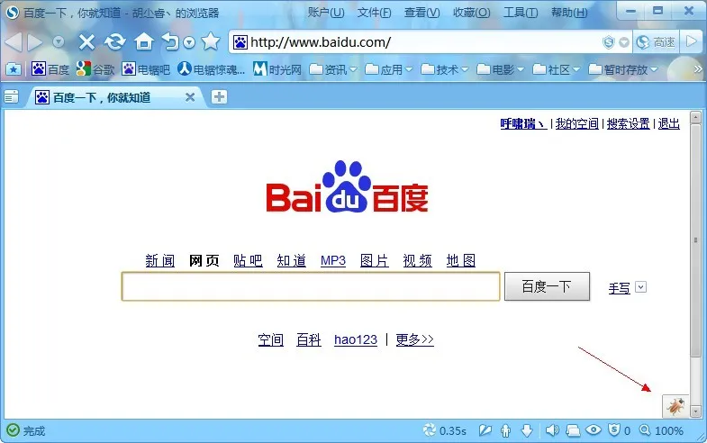 2、在任意页面点击刚才添加的收藏,然后等一会,就会在页面右下角看到一个firebug的小按钮,然后点击它即可。