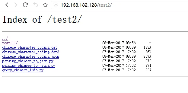 我们知道apache httpd默认情况下会显示访问目录的文件列表,但是nginx访问时如果目录下面没有默认首页,那么会返回403 Forbidden的错误,表示没有权限访问,比如根目录就是nginx安装目录下的html,下面有一个目录test2,那么默认情况就和如下配置完全等效: